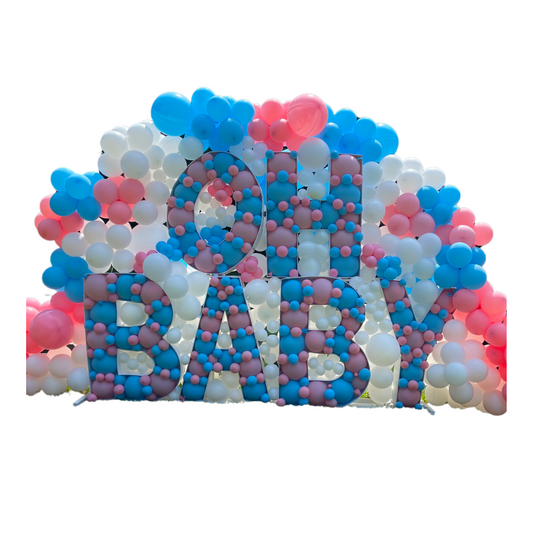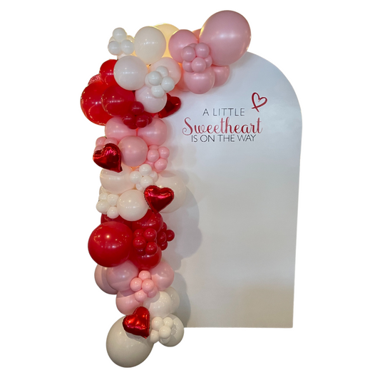 Round Top Chiara Backdrop w/ Balloons and Custom Vinyl