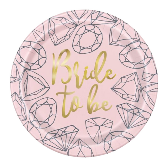 Pink Diamond Bachelorette Party Round Dinner Plates 8ct - Foil Stamping