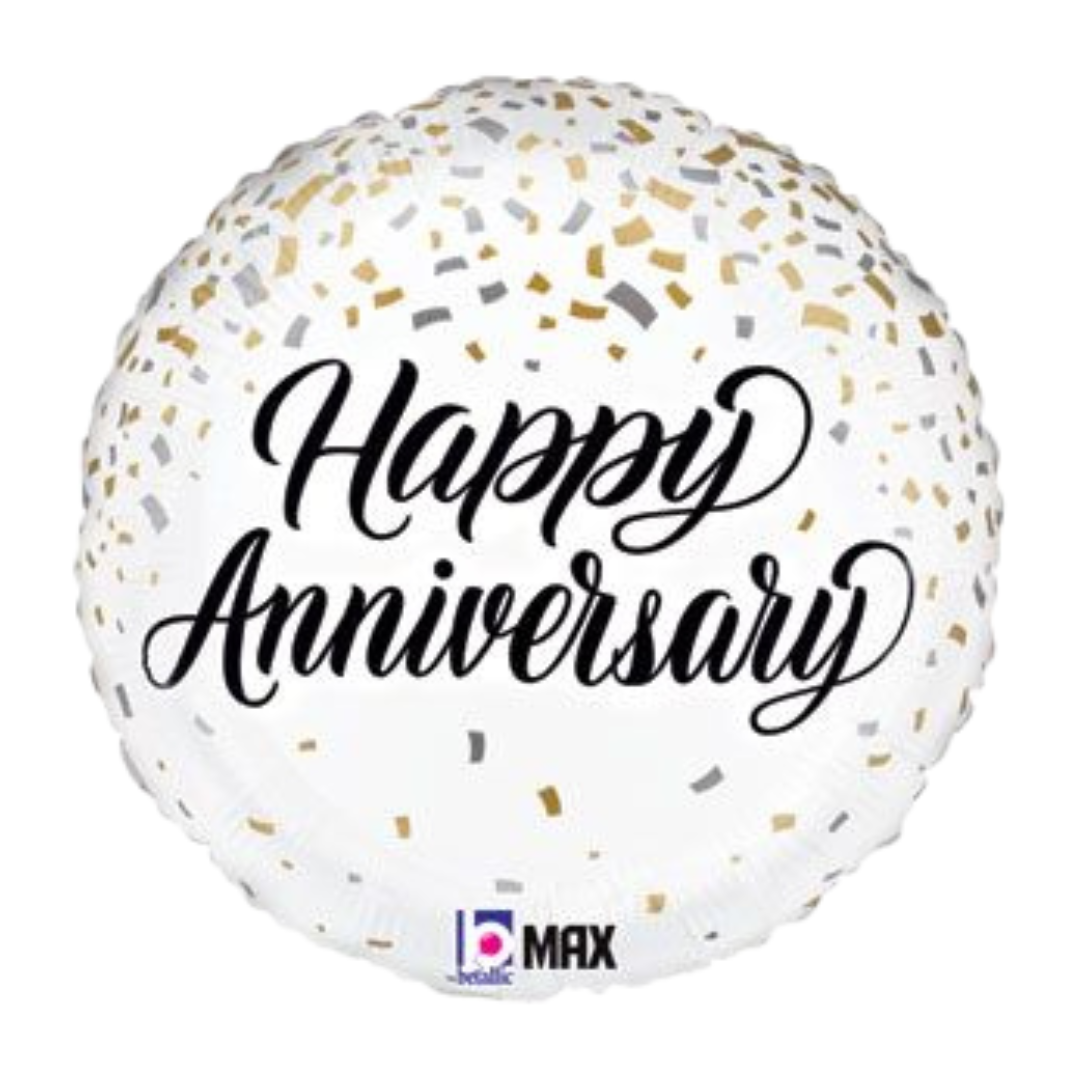 Celebrate your special day with the 18" Anniversary Metallic balloon! Its shiny, metallic finish brings a fun and festive sparkle to any party.