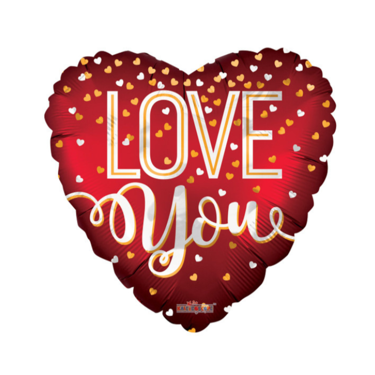 Express your affection with this 36-inch Love You Red Matte Balloon, featuring the heartfelt message "Love You" surrounded by delicate white and gold hearts. This elegant balloon is perfect for Valentine’s Day, anniversaries, weddings, or any celebration of love.