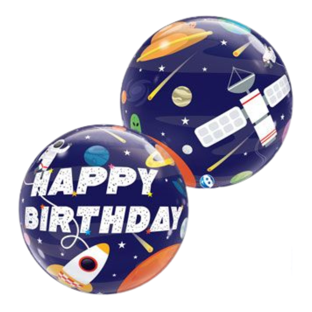 Create an unforgettable atmosphere with this 22" Bubble balloon showcasing stunning outer space visuals. The see through bubble design highlights intricate galactic artwork that captivates guests and transforms any space. Ideal for space themed parties, educational events, or décor enthusiasts seeking something extraordinary, this balloon makes setup effortless.