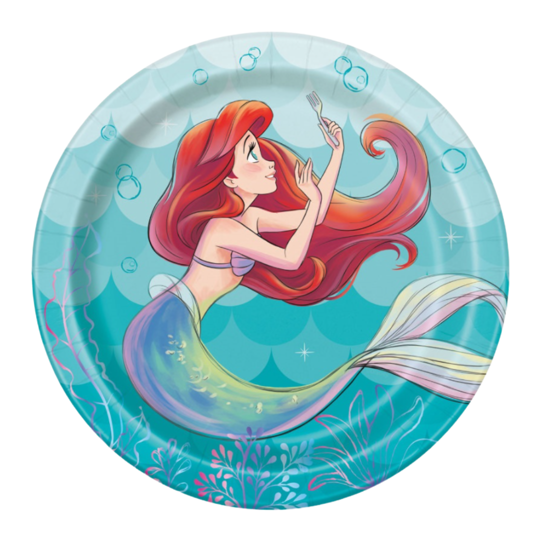 Add a splash of ocean magic to your party with these Little Mermaid dessert plates! Featuring Ariel in vibrant colors, these 7" plates are perfect for serving cake and snacks at your under-the-sea celebration. Sturdy and easy to clean up, they’re the perfect touch for any Little Mermaid birthday party!